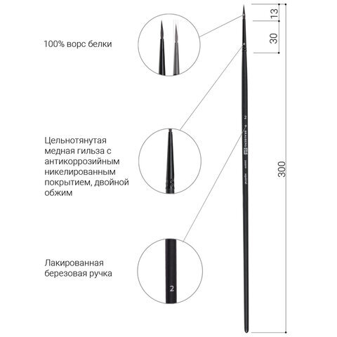 Кисть художественная проф. BRAUBERG ART CLASSIC, белка, круглая, № 2, длинная ручка, 200899