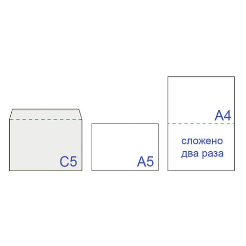 Конверт почтовый формата С5 предназначен для рассылки писем, открыток, документов формата А5 или А4 в сложенном виде.