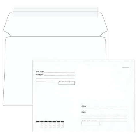 Конверты С5 (162х229 мм), отрывная лента, "Куда-Кому", 80 г/м2, КОМПЛЕКТ 1000 шт., 41378