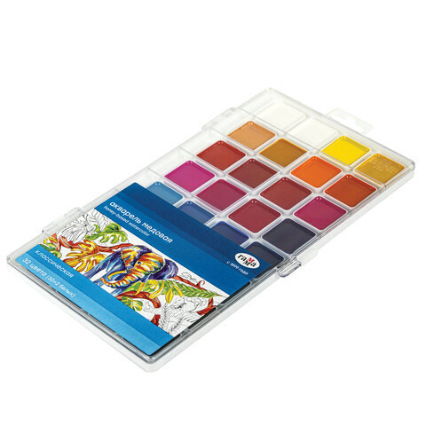 Медовая акварель в обновленной подложке: больший объем краски в кюветах – больше возможностей для творчества. Благодаря качественному прозрачному связующему в составе цвета акварели яркие и чистые.