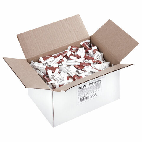 Сахар в стиках WELDAY. Порционная упаковка в трехшовные пакетики-стики по 5 грамм обеспечивает удобство применения. В одной упаковке 500 стиков общим весом 2,5 кг.