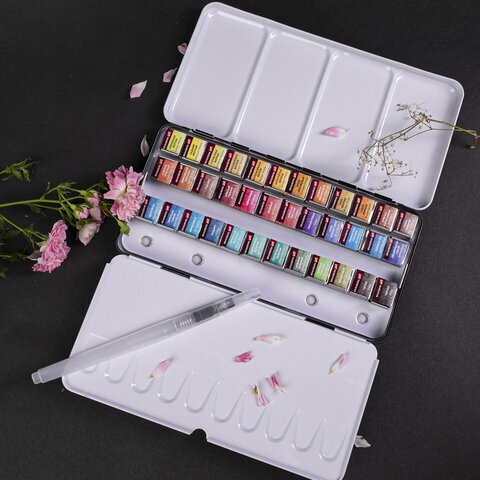 Акварель художественная кюветы НАБОР 36 цветов по 3,5 г, металлический кейс, BRAUBERG ART PREMIERE, 191774