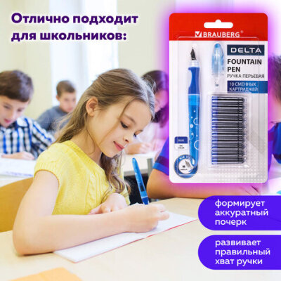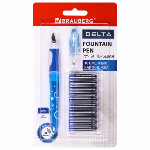 Ручка перьевая с 10 сменными картриджами BRAUBERG "DELTA", эргономичный корпус, иридий, 143954