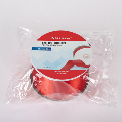 Лента атласная ширина 50 мм, длина 23 м, красная, BRAUBERG, 591521