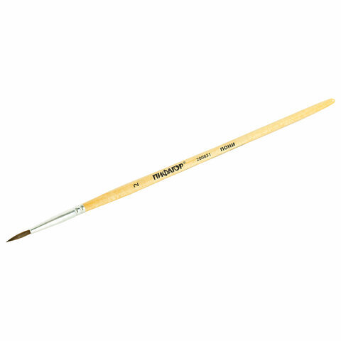 Кисть ПИФАГОР, ПОНИ, круглая, № 2, деревянная лакированная ручка, с колпачком, 200831