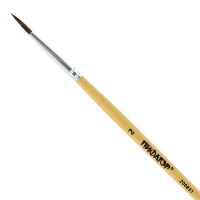 Кисть ПИФАГОР №2 подходит для работы с акварелью, гуашью, тушью, а также для прорисовывания различных деталей рисунка. Снабжена защитным пластиковым колпачком.