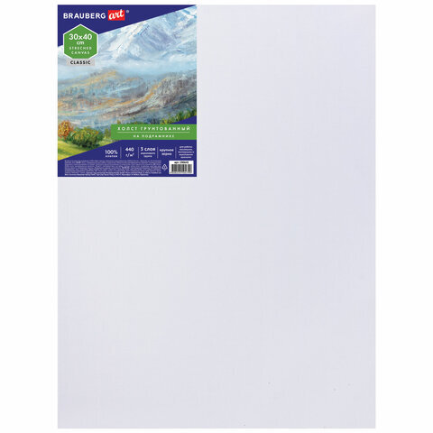 Холст на подрамнике BRAUBERG ART CLASSIC, 30х40 см, 440 г/м2, грунт, 100% хлопок, крупное зерно, 190645