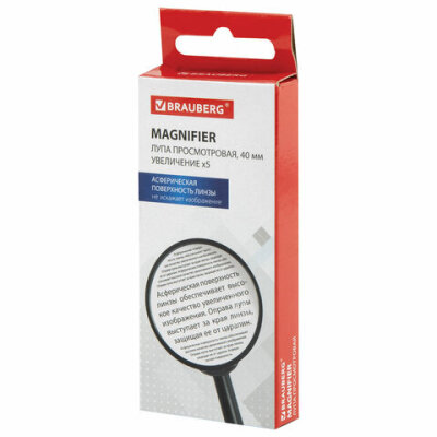 Лупа просмотровая BRAUBERG, диаметр 40 мм, увеличение 5, 451797