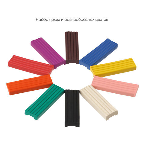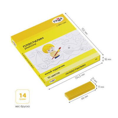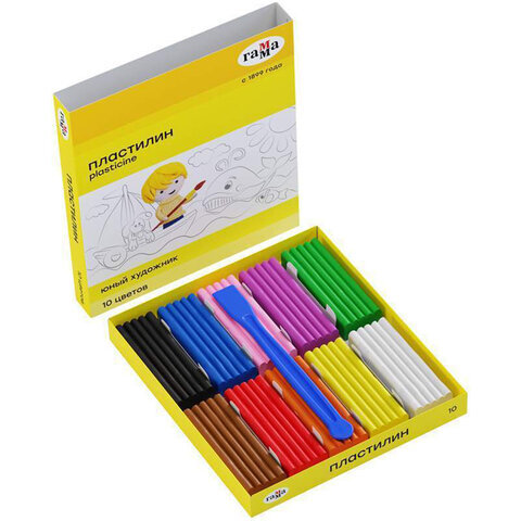 Пластилин классический ГАММА "Юный художник NEW", 10 цветов, 140 г, со стеком, картонная упаковка, 280044