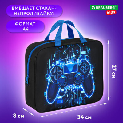 Папка на молнии с ручками BRAUBERG KIDS А4, 1 отделение, полиэстер, 80 мм, "Digital gamepad", 273316