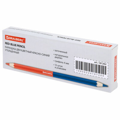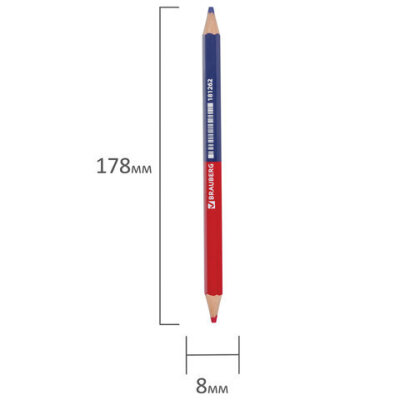 Высококачественный утолщенный двухцветный красно-синий карандаш BRAUBERG. Предназначен для нанесения пометок и зарисовок. Рекомендован людям многих профессий: учителей, художников, военных. Незаменим для учащихся.