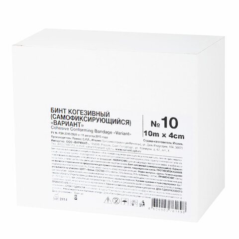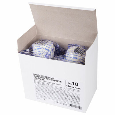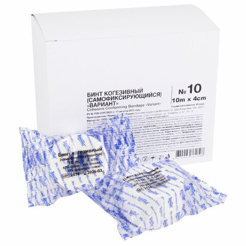 Бинт эластичный самофиксирующийся 10 м х 4 см, белый, КОМПЛЕКТ 10 шт., "ВАРИАНТ"