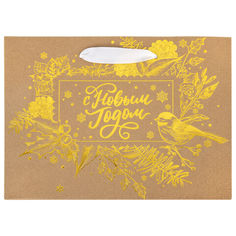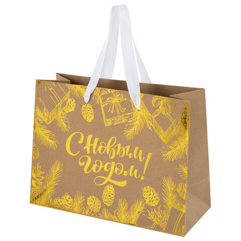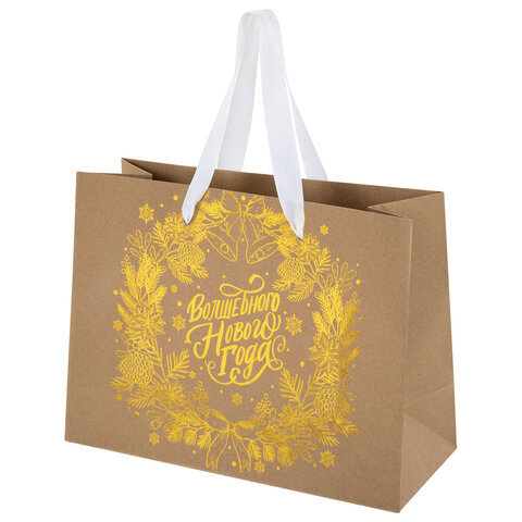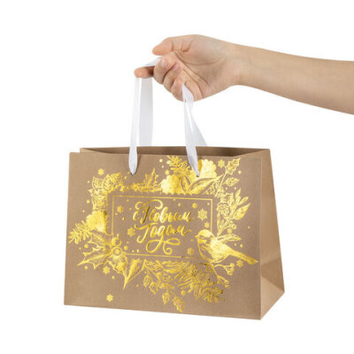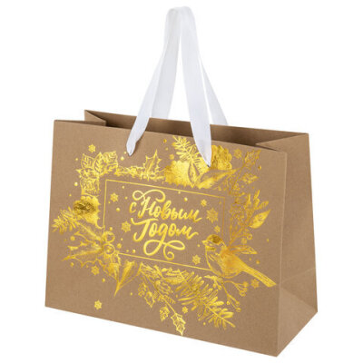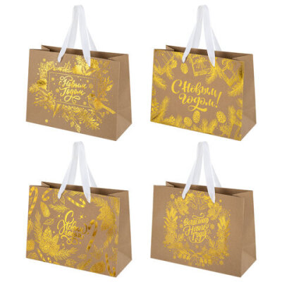 Подарочный пакет новогодний "Shiny Kraft" ЗОЛОТАЯ СКАЗКА – отличное решение для упаковки любого презента, которое позволит легко и со вкусом оформить выбранный подарок.