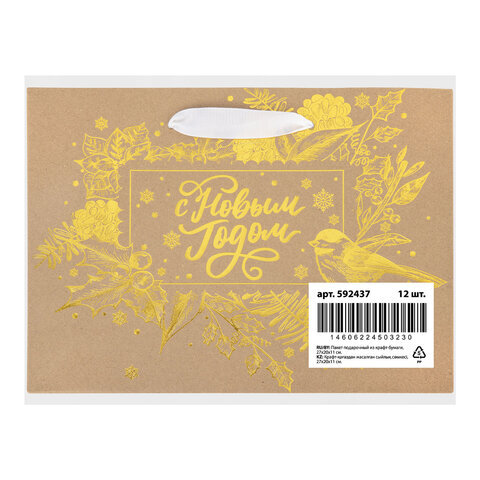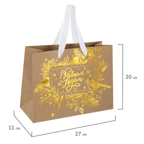 Пакет подарочный (1 шт.) новогодний, 27х11х20 см, "Shiny Kraft", фольга, ассорти, ЗОЛОТАЯ СКАЗКА, 592437