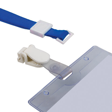 Лента для бейджей, 45 см, съемный пластиковый клип-замок с петелькой, СИНЯЯ, BRAUBERG, 235729