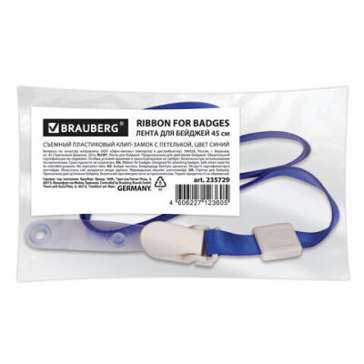 Лента BRAUBERG подойдет для любого бейджа. Надежный тип крепления.