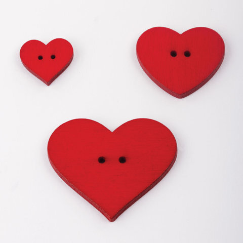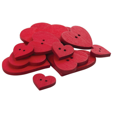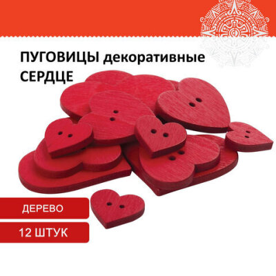 Пуговицы декоративные "Сердце", дерево, 12 шт., ассорти, красные, ОСТРОВ СОКРОВИЩ, 661421