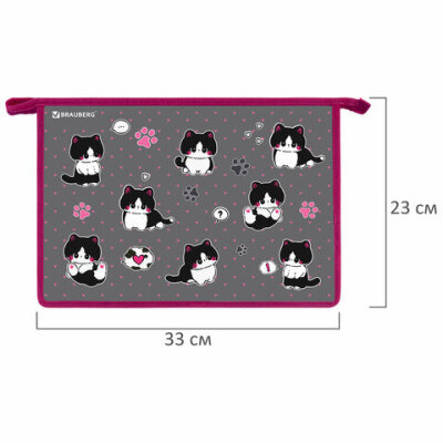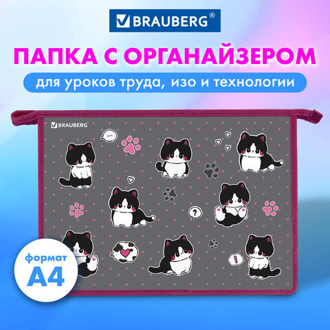 Папка для труда на молнии BRAUBERG А4, 2 отделения, органайзер, "Cat patches", 272211