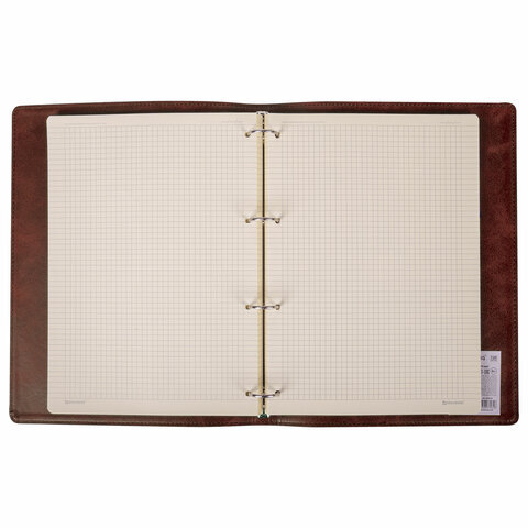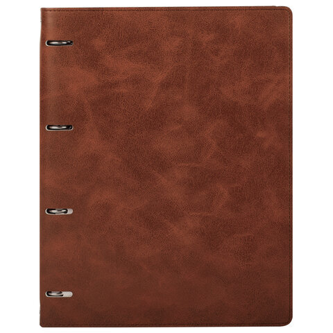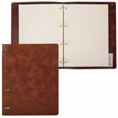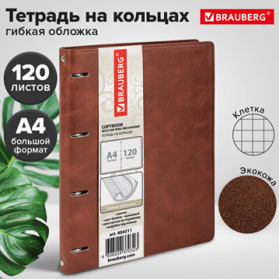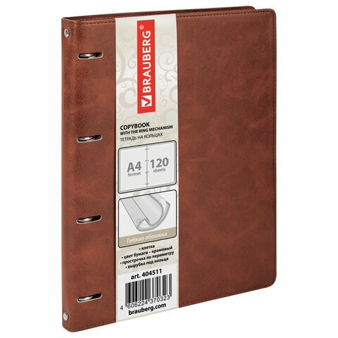 Тетрадь на кольцах БОЛЬШАЯ А4 (240х310 мм), 120 листов, под кожу, клетка, BRAUBERG "Main", коричневый, 404511