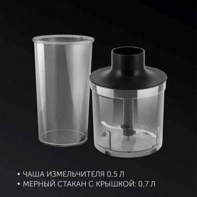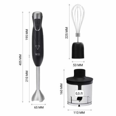 Блендер погружной POLARIS PHB 0848 Brilliant Collection, 800 Вт, 2 режима, 3 насадки, стакан, черный
