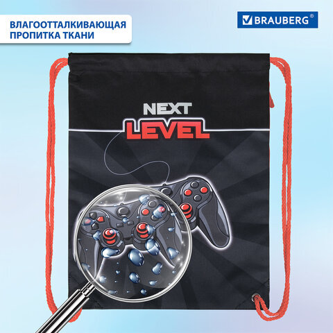 Мешок для обуви BRAUBERG PREMIUM, карман, подкладка, светоотражающие элементы, 43х33 см, "Next level", 270748