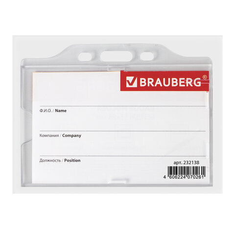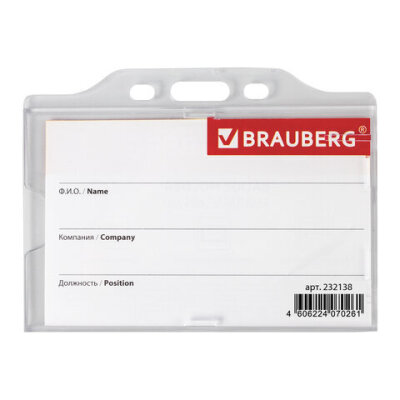 Горизонтальный бейдж BRAUBERG для именной карточки предназначен для идентификации сотрудников в компаниях, а также на семинарах, тренингах, презентациях и других мероприятиях.