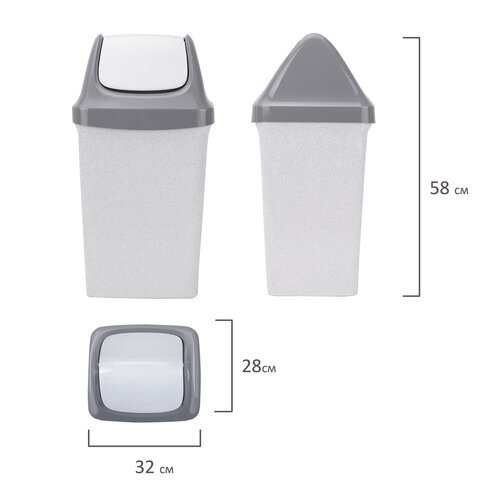 Ведро мусорное с КРЫШКОЙ (качающейся) 25 литров, "СВИНГ", 58х32х28 см, серое, IDEA, М 2463