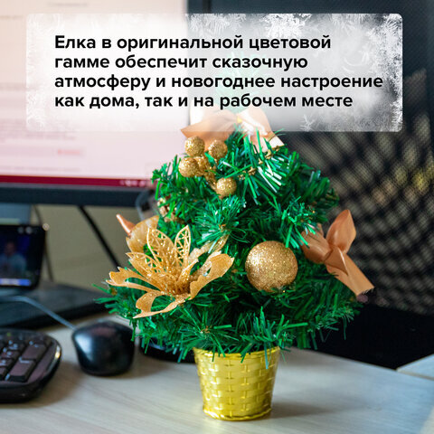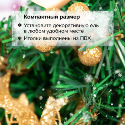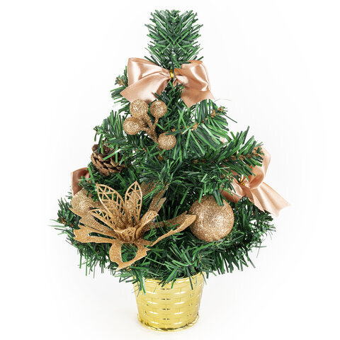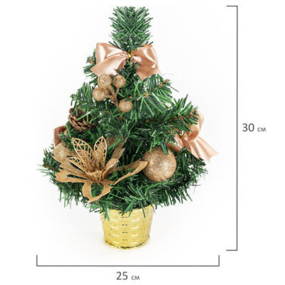 Ель искусственная декоративная 30 см, ПВХ, цвет украшений: кремовое золото, ЗОЛОТАЯ СКАЗКА, 591324