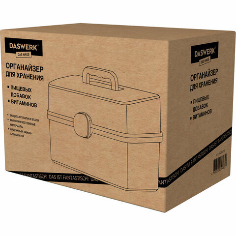 Универсальный органайзер DASWERK предназначен для хранения медикаментов, маникюрных инструментов, кистей, бижутерии, духов, аксессуаров для рукоделия, косметики и многого другого.