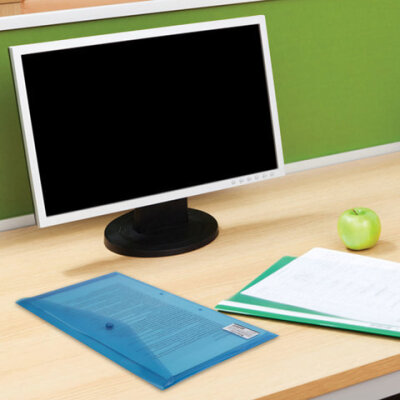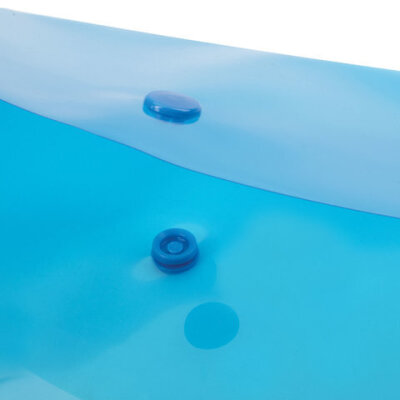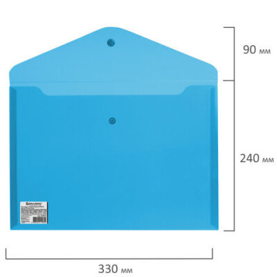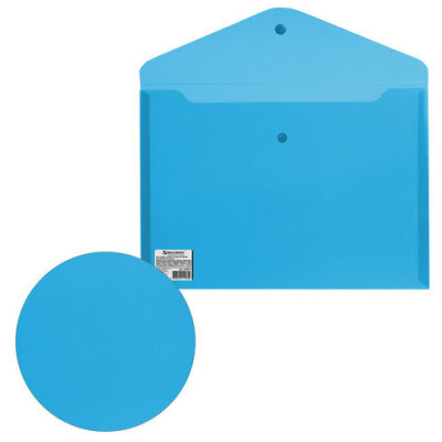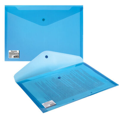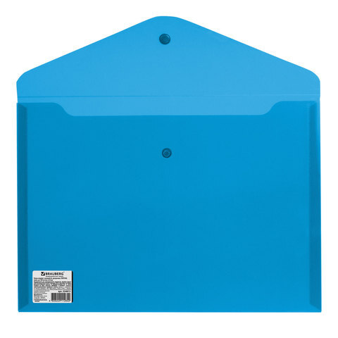 Папка-конверт с кнопкой BRAUBERG, А4, до 100 листов, прозрачная, синяя, СВЕРХПРОЧНАЯ 0,18 мм, 224813