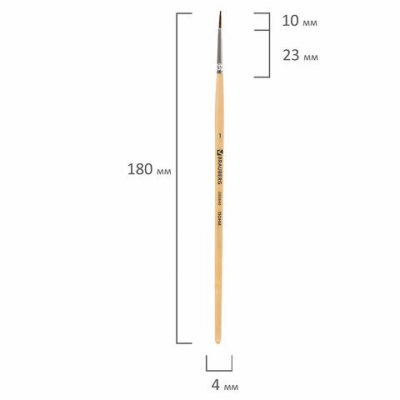 Кисть BRAUBERG № 1 подходит для работы с акварелью, гуашью, тушью, а также для прорисовывания различных деталей рисунка. Снабжена защитным пластиковым колпачком.