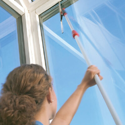 Телескопическая ручка для комфортного мытья окон на большой высоте, состоит из двух колен. Имеет специальный наконечник для надежной фиксации склиза или щетки. Благодаря ребристому соединяющему элементу длину удобно регулировать даже мокрыми руками.
