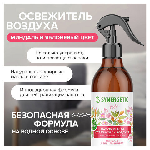 Освежитель воздуха 380 мл SYNERGETIC "Миндаль и яблоневый цвет", биоразлагаемый, нейтрализатор запахов, спрей, 900001