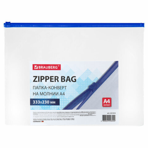 Папка-конверт на молнии BRAUBERG идеально подойдет для хранения и транспортировки документов.