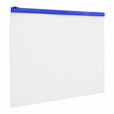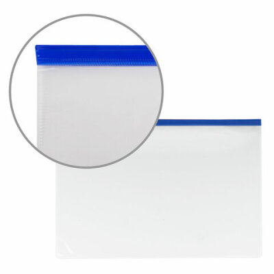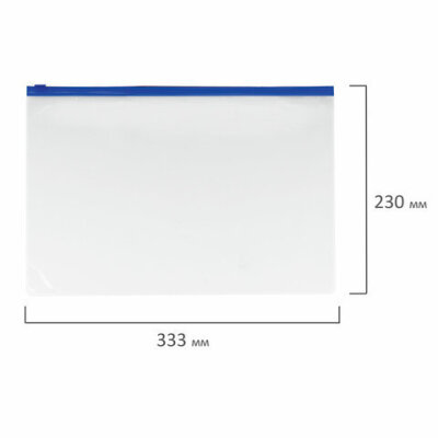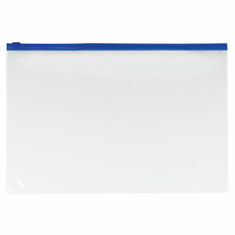 Папка-конверт на молнии А4 (230х333 мм), прозрачная, молния синяя, 0,11 мм, BRAUBERG, 221010