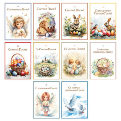 Открытка пасхальная (1 шт.), 7х10 см "Светлая Пасха", картон, ассорти, ЗОЛОТАЯ СКАЗКА, 592642