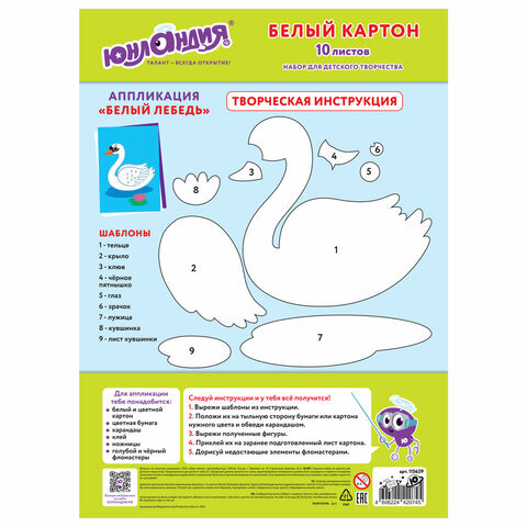 Набор белого картона ЮНЛАНДИЯ предназначен для творчества и может использоваться детьми от 3 лет. Картон рекомендован для уроков труда и технологии.