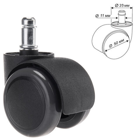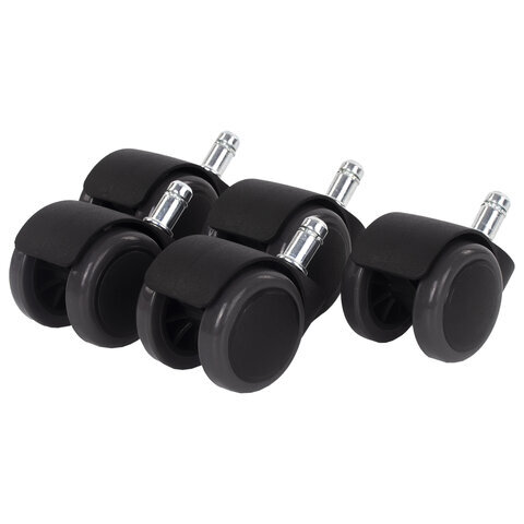 Колеса (ролики) BRABIX для кресла, прорезиненные, КОМПЛЕКТ 5 шт., шток d 11 мм, черные, в коробе, 532009