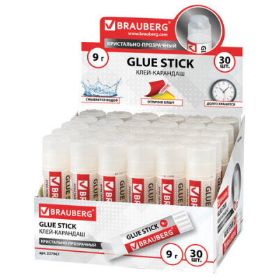 Клей-карандаш BRAUBERG "Crystal", 9 г, прозрачный, 227967, PVP