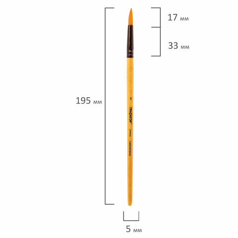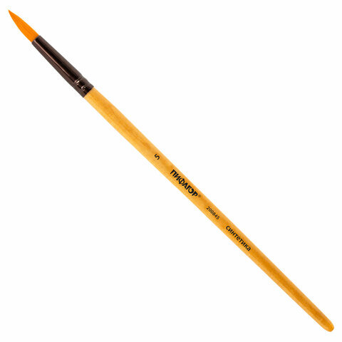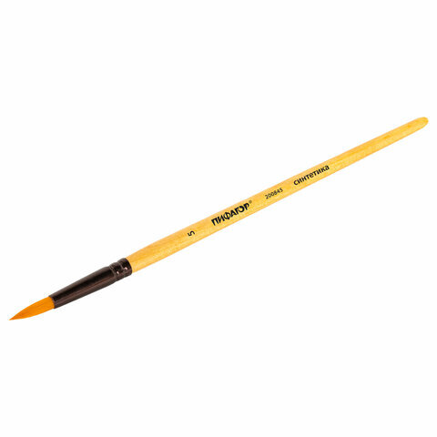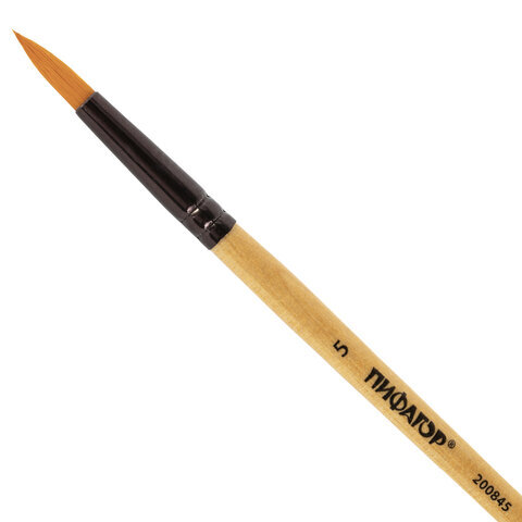 Кисть ПИФАГОР, СИНТЕТИКА, круглая, № 5, деревянная лакированная ручка, с колпачком, 200845