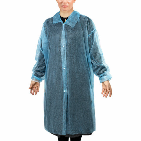 Халат нетканый с кнопочной застежкой и рукавом на резинке – защитная одежда для работников, подвергающихся риску химического или биологического воздействия, брызгам и испарениям.