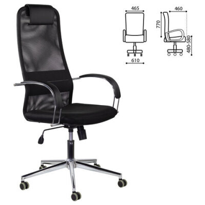 Кресло офисное BRABIX "Pilot EX-610 CH" premium, хром, ткань-сетка, черное, 532417