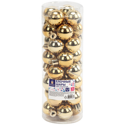 Шары ёлочные 32 шт., 2,5 см, "Tender Shine", пластик, золотистые, глянец, ЗОЛОТАЯ СКАЗКА, 592502