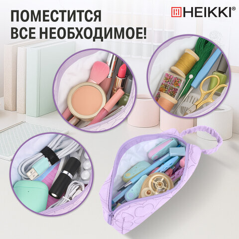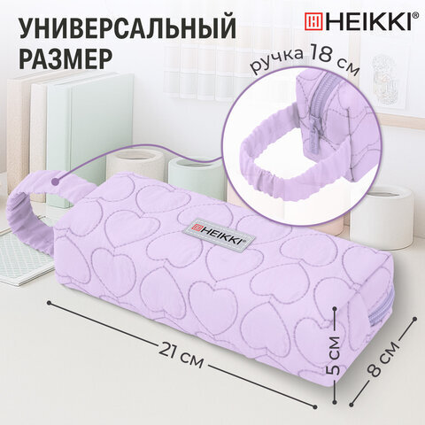 Пенал-косметичка HEIKKI (ХЕЙКИ) с ручкой, 1 отделение, стеганый полиэстер, 21х8х5 см, фиолетовый, 273606