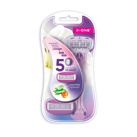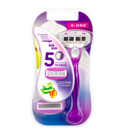 Бритвенный станок многоразовый женский, 5 лезвий, 2 кассеты, плавающая головка, X-ONE (ИКС-УАН), 700020