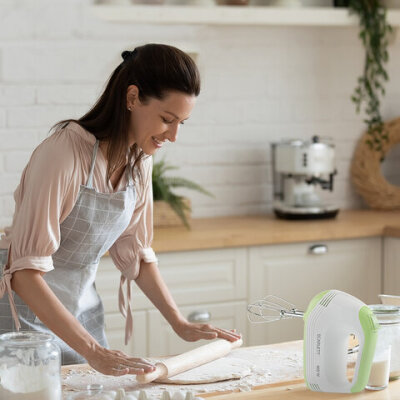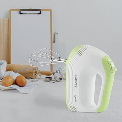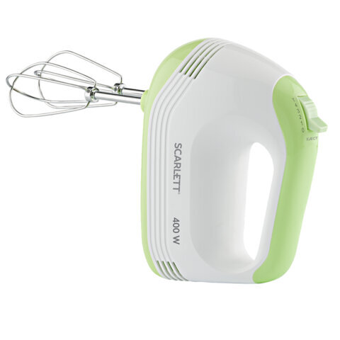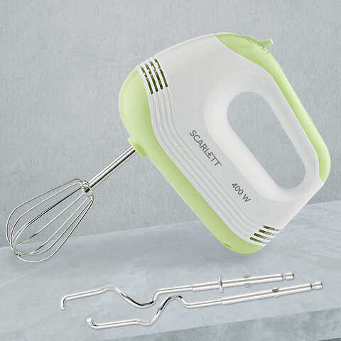 Миксер SCARLETT SC-HM40S15, 400 Вт, 5 скоростей, 2 венчика, 2 крюка для теста, белый/зеленый