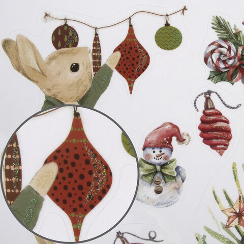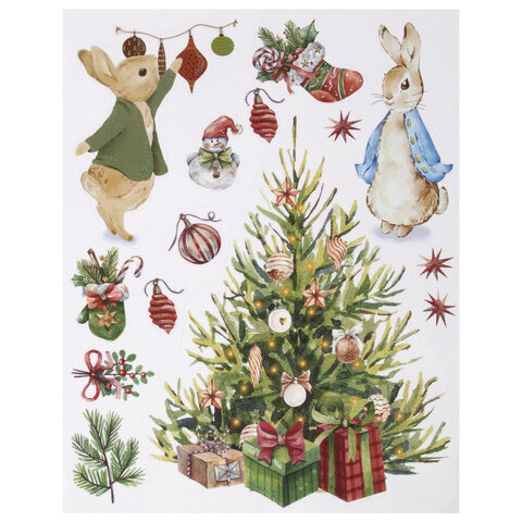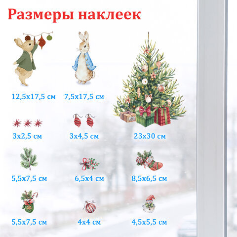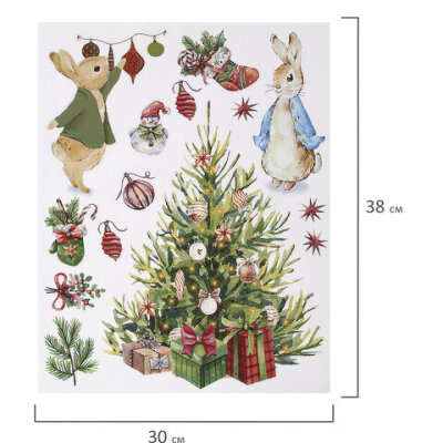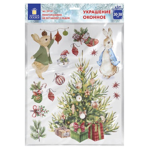 Наклейка для окон двусторонняя МНОГОРАЗОВАЯ 30х38 см "Зайцы и ёлка", ЗОЛОТАЯ СКАЗКА, 591181