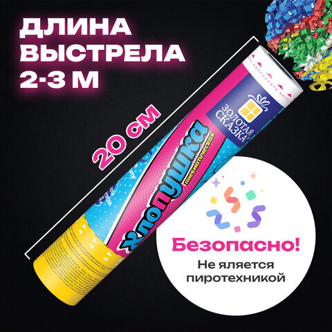 Пневматическая хлопушка не является пиротехникой и работает на основе энергии сжатого воздуха. Конфетти и серпантин ярких цветов можно использовать в помещении или на улице. Хлопушка подойдет для праздников, концертов, реквизита для фотосессии.