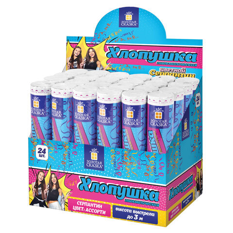 Хлопушка пневматическая 20 см "Party Popper", фольга, серпантин, ассорти, ЗОЛОТАЯ СКАЗКА, 592464