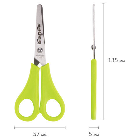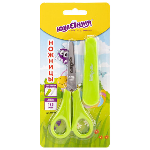 Ножницы ЮНЛАНДИЯ, 135 мм, с линейкой и футляром для лезвий, салатовые, блистер, 237109